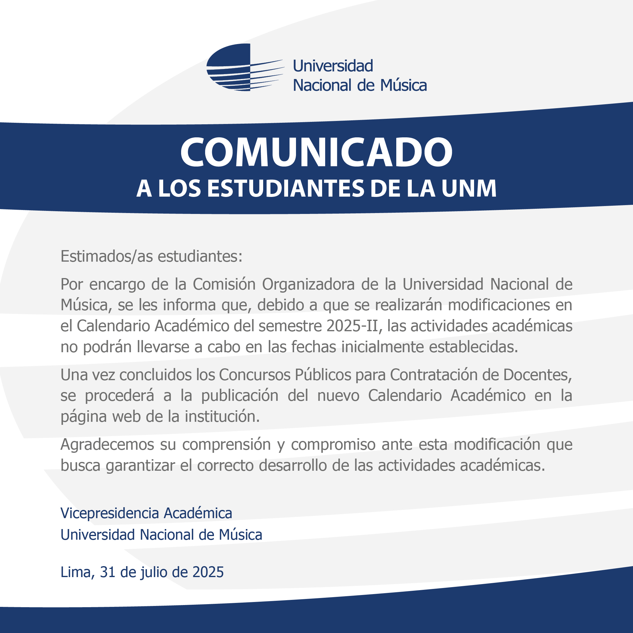 Plan Curricular de Estudios de 2011, 2022 y 2024 de la Universidad Nacional de Música para los estudios de pregrado correspondientes al Programa Académico de Música para sus cuatro (4) especialidades: Interpretación Musical, con veintidós (22) menciones, Composición, Musicología y Educación Musical.